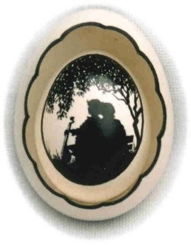 Die folgenden Exponate bestehen aus aufgefrästen Enten- und Gänseeiern in die kleinere Eier (Ente oder Zwerghuhn) eingesetzt werden. Das innere Ei ist befestigt.